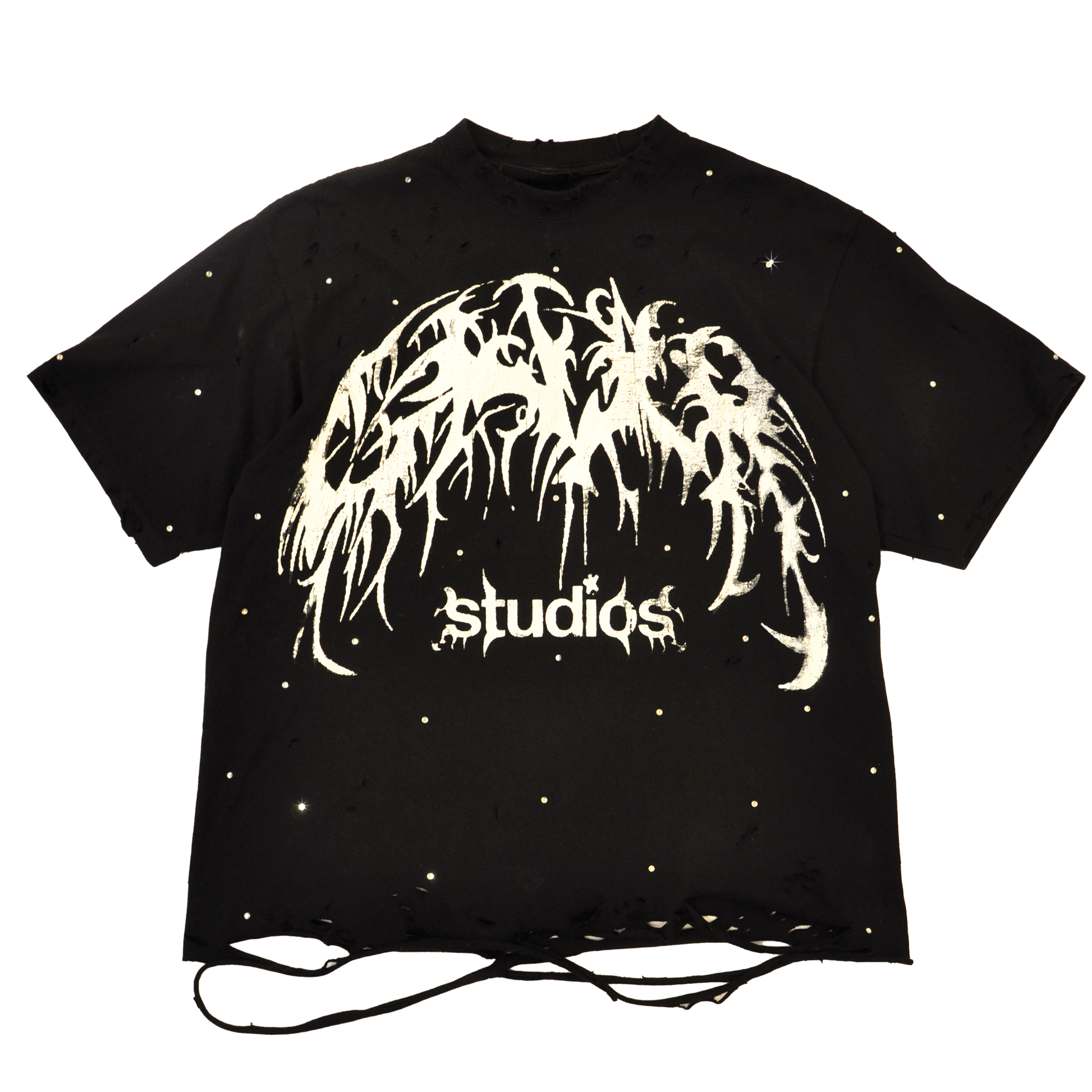 Distressed on collar, sleeves and bottom
